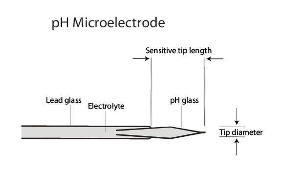 氫離子和pH微電尖端鈉玻璃上的鈉離子交換產(chǎn)生電流,測量內(nèi)部電解液和參比電之間的電位可以獲得精確的pH值。
