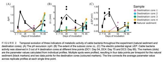 硫化物梯度:量化電子供體的空間分布,硫化物出現(xiàn)深度與電纜細(xì)菌下緣位置吻合,證明硫氧化與氧還原的耦合