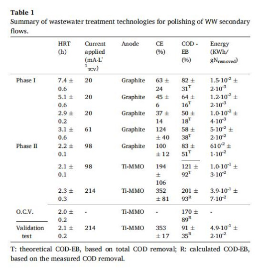 Phase II:處理高銨廢水(NH?-NO?-WW),更換陽極材料測試消毒效果,并提高電流密度(最高214 mA·L?1)以處理高氮負荷。