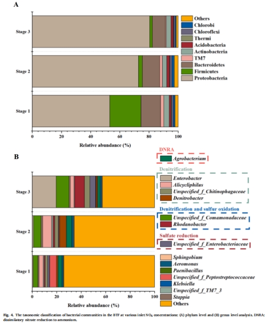 微生物機制:高NOx濃度富集反硝化菌(如Enterobacter)和NR-SOB(如Rhodanobacter),促進NOx還原與S?生成(圖4)。