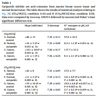 在CO?/HCO??存在下,cariporide仍保留部分酸排出能力(表1)。