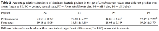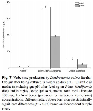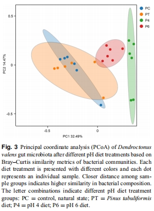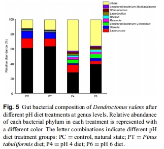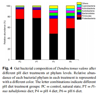 Effects of simulated gut pH environment on bacterial composition and pheromone production of Dendroctonus valens