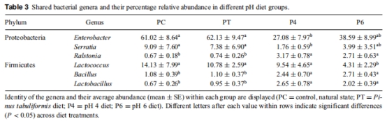 意義:首次量化飲食pH對紅脂大小蠹腸道酸堿度的調(diào)控能力,為微生物群落變化提供環(huán)境背景。