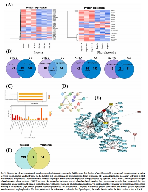 磷酸化蛋白質(zhì)組學(xué):鑒定CLP(盲腸結(jié)扎穿孔)膿毒癥小鼠模型經(jīng)氫氣干預(yù)后的差異磷酸化蛋白(圖2)。