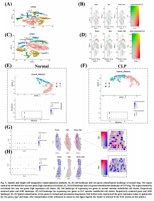 單細胞/空間轉(zhuǎn)錄組:定位靶基因(Esam/Zo-1)在肺細胞中的空間分布(圖4)。