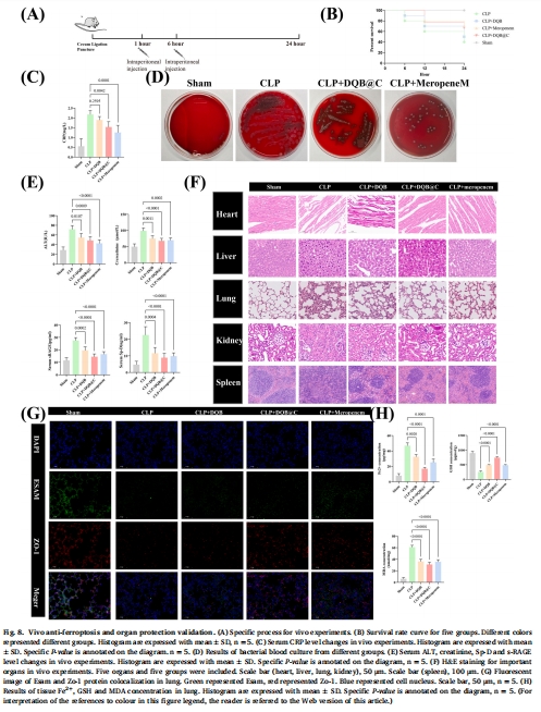 生存率:DQB@C組24 h生存率達70%(vs CLP組40%)(圖8B)。