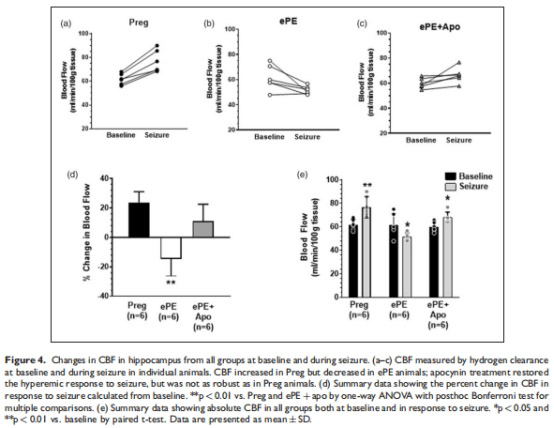 ePE組癲癇期血流量↓15%,ePE+apo組恢復(fù)↑40%(接近Preg組↑50%)。