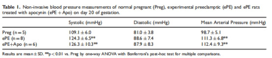 血壓:ePE及ePE+apo組均↑↑(表1)。
