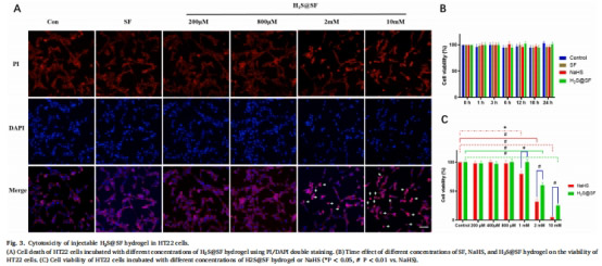 SF水凝膠負載NaHS(H?S供體),濃度優化(0.2-2 wt%)。