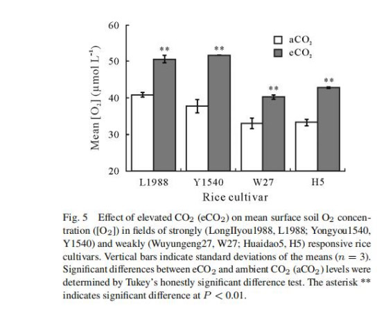 品種差異:強響應品種在aCO?和eCO?下的[O?]分別比弱響應品種高19%和23%(圖5)。