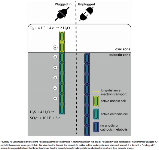 “氧氣起搏器”模型:提出新模型解釋同步分裂機制——電纜細菌僅在接觸氧氣時啟動長距離電子傳輸,從而觸發全絲同步生長與分裂(圖7)。