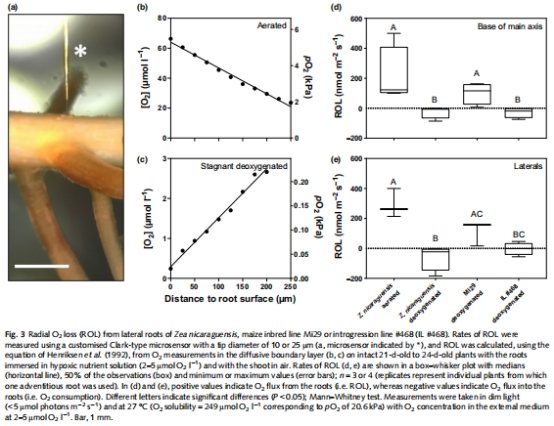 除了不定根外,側根在 Zea nicaraguensis 中形成徑向氧損失的屏障,在玉米中形成染色體段滲入線
