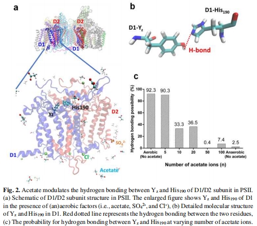 分子層面:MD模擬乙酸鹽對PSII中Yz-His190氫鍵的影響(圖2)。