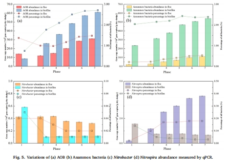 qPCR定量AOB/NOB/厭氧氨氧化菌,高通量測序鑒定菌屬(圖5-6);