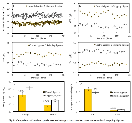 圖2:氨剝離對甲烷產(chǎn)量與TAN的影響