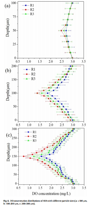 200-300 μm絮體核心DO趨近0 mg/L(缺氧區);