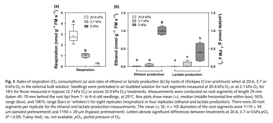 ? 離體根段培養:測定不同O?水平(20.6/3.7/0 kPa)下的O?消耗、乙醇和乳酸產量(圖5)。