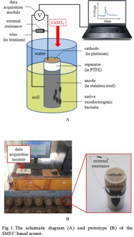 開發(fā)一種基于SMFC的傳感器,實現(xiàn)在線、原位監(jiān)測水中Cu2?沖擊,解決傳統(tǒng)生物陽極/生物陰極傳感器需長時間馴化、易被毒性物質(zhì)破壞的問題。