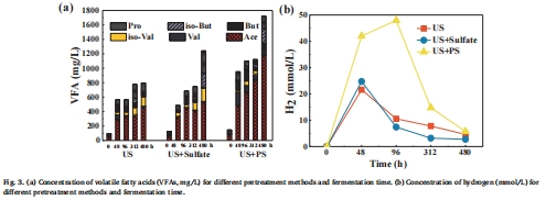 數據:US+PS預處理下,VFA生產最高(1708.3 mg/L),乙酸占比74.8%;氫氣產量顯著增加。