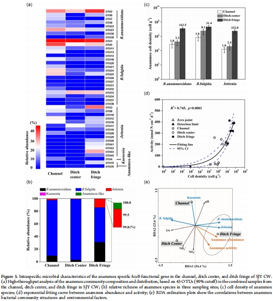研究意義:直接驗證溝渠邊緣為氮循環熱點,anammox是氮損失主要途徑;豐度與速率正相關,表明微生物活性驅動氮去除。