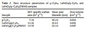 晶體結構:XRD驗證g-C?N?的層狀結構,NiS和LaFeO?的衍射峰因高分散性未檢測到(圖1)。