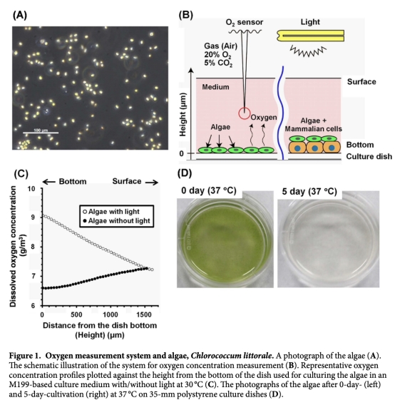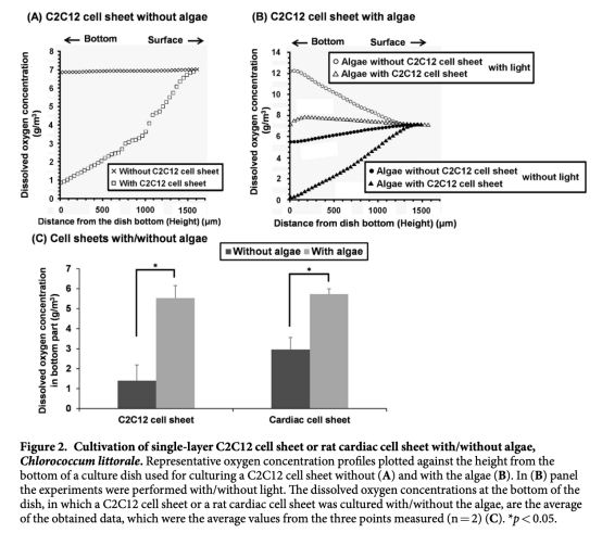 Thicker three-dimensional tissue from a"symbiotic recycling system" combining mammalian cells and algae