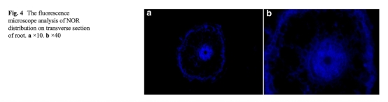 4 熒光顯微鏡圖像數據來自Fig. 4,研究意義是直觀展示諾氟沙星在根部的空間分布,證實其主要在細胞外部(質外體途徑),未進入細胞,說明轉運機制。