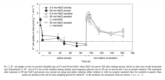 5. 恢復(fù)數(shù)據(jù):測量再通氣后凈K+吸收,顯示快速恢復(fù),表明損傷小。數(shù)據(jù)來自FIG.2和FIG.3。研究意義是確認組織耐受性,缺氧NaCl脅迫未導(dǎo)致永久損傷,支持能量平衡機制的有效性。