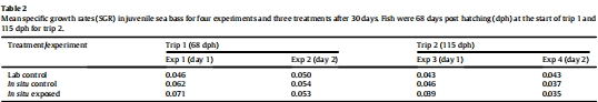 數(shù)據(jù):圖3D和表2顯示,30天后特定生長率(SGR)和Fulton條件因子(K)在處理組間無顯著差異(如SGR約0.04-0.07%/天)。