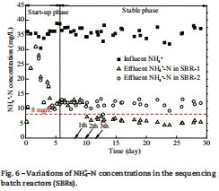 SBR性能驗證:設(shè)置兩個SBR(實驗組SBR-1添加顆粒,對照組SBR-2僅用活性污泥),在低溫(7-11°C)下運行180周期,監(jiān)測NH?-N、NO?-N、NO?-N、總氮(TN)和化學(xué)需氧量(COD)去除效率,并分析污泥特性(如SV??、MLSS、SOUR)。