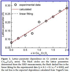 數據來源:圖2展示晶格參數隨Cr含量的變化趨勢,實驗數據與Vegard定律計算值高度吻合。