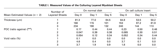 研究思路是使用層疊的成肌細胞片作為三維工程組織模型,通過溫度響應培養皿制備單層、雙層和三層細胞片。研究結合了氧微電極系統(使用丹麥Unisense電極)測量垂直軸上的氧濃度剖面,以及OCT系統獲取組織橫截面圖像以估計厚度。測量在培養的第0天、第1天和第5天進行,參數包括 pericellular oxygen concentrations (POC)、培養基氧梯度 (gradOxy_medium) 和組織氧梯度 (gradOxy_tissue)。同時,通過生化分析測量葡萄糖消耗率和乳酸產生率,并利用圖像處理分析空腔比率。研究還比較了在正常培養皿和多孔膜培養插入物上的培養效果,以評估不同培養條件對組織活性的影響。