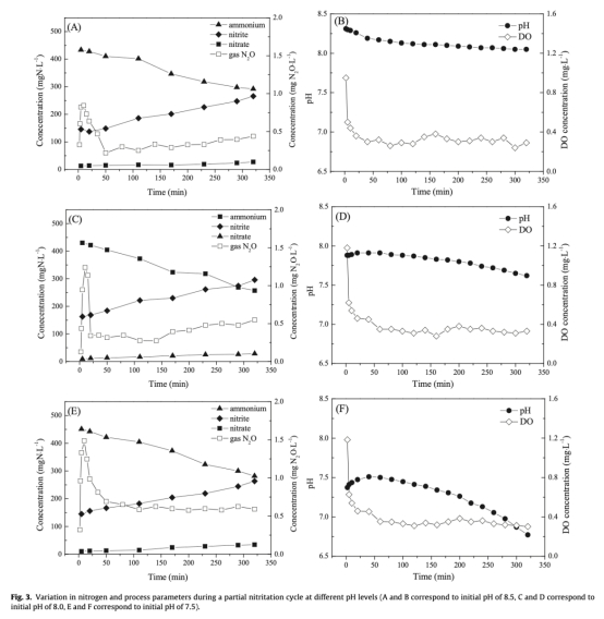 3 pH控制可作為關鍵操作參數,通過維持較高pH(如8.0以上)來最小化N2O排放,同時保持部分亞硝化效率。