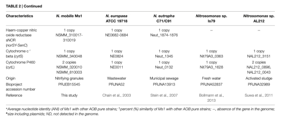 3 基因組分析顯示Ms1與其他Nitrosomonas物種平均核苷酸同一性低(如與N. europaea為70.7%),基因為氨氧化和反硝化途徑的組織獨特,支持其作為獨立譜系的分類。