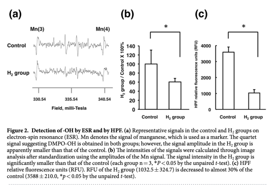 2. 體外羥基自由基的檢測:數(shù)據(jù)來自圖2a, b, c。通過電子自旋共振和羥基苯基熒光素分析。研究意義是直接證明氫氣能顯著抑制超聲乳化過程中產(chǎn)生的羥基自由基,為后續(xù)在體實(shí)驗(yàn)提供機(jī)制依據(jù)。