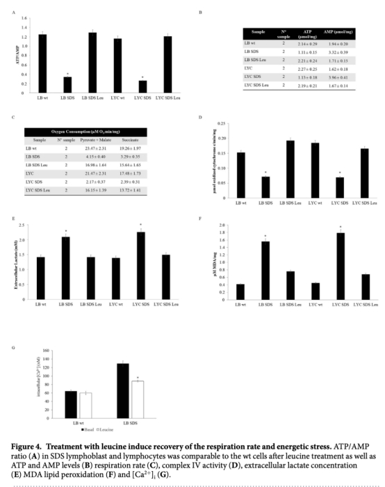 本研究旨在表征SDS細胞的能量代謝和呼吸譜,以及調節這些過程的生化途徑。具體目的是評估SDS細胞中能量生產缺陷的機制,包括氧化磷酸化、糖酵解、氧化應激和鈣穩態的變化,并探索亮氨酸治療的潛在作用。