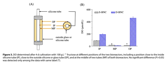 2 DO分布:數據來自圖3,顯示培養4天后生物反應器中不同位置的氧氣濃度。研究意義在于證明氧氣梯度影響細菌分布,D-BNC生物反應器在內外管位置DO更高,導致更均勻的BNC形成。