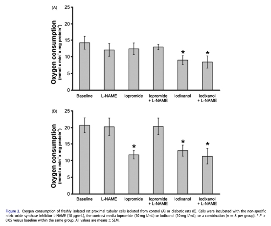 lodinated contrast media inhibit oxygen consumption in freshly isolated proximal tubular cells from elderly humans and diabetic rats: Influence of nitric oxide