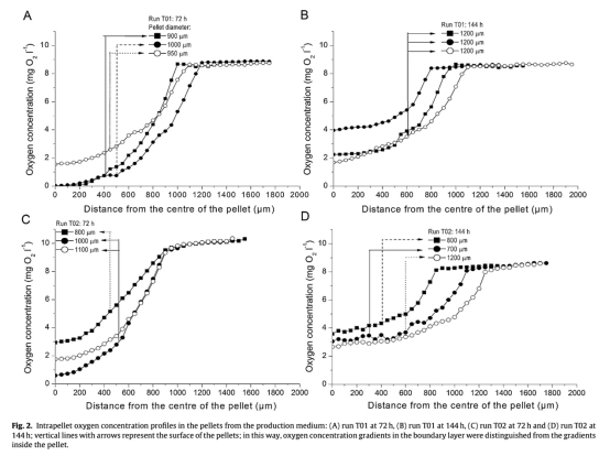 使用丹麥Unisense電極測量pellet內氧氣濃度數據的研究意義在于提供了直接、高分辨率的氧氣分布量化工具。電極通過微探針在靜態條件下測量pellet內部氧氣梯度,能準確識別缺氧區域(如表1中顯示部分pellet中心氧氣濃度降至零)。這些數據揭示了形態與氧氣傳輸的因果關系:松散pellet(如實驗T02)允許氧氣更深穿透,減少內部細胞缺氧,從而維持更高代謝活性和洛伐他汀合成。相比間接參數(如培養液pO2),這種直接測量幫助驗證了MPEC的有效性,證明小pellet能改善擴散限制。此外,數據支持了形態工程的理論基礎,為優化工業發酵過程提供了實證依據,強調內部控制優于外部條件調整。