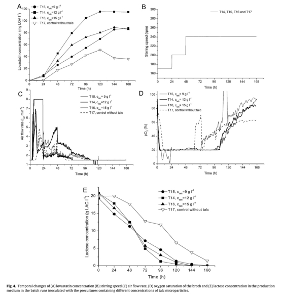 這篇論文的摘要討論了應用微顆粒增強培養(MPEC)技術來改善土曲霉(Aspergillus terreus)生產洛伐他汀的過程。研究通過添加滑石粉微顆粒到預培養中,改變真菌的pellet形態,使pellet更小、更松散,從而改善氧氣 access。結果顯示,MPEC能顯著提高洛伐他汀滴度,在最佳連續補料分批運行中達到250 mg/L,比對照高3.5倍。摘要強調氧氣可及性對洛伐他汀生產的關鍵作用,并指出MPEC因微顆粒低成本而成為有吸引力的替代方法。