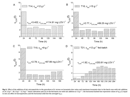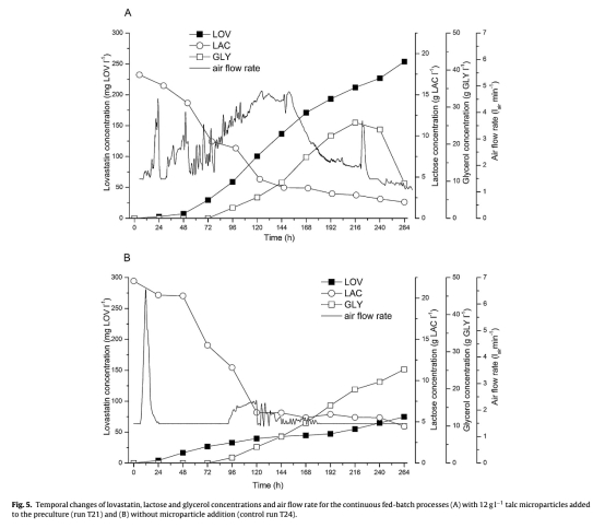 Application of microparticle-enhanced cultivation to increase the access of oxygen to Aspergillus terreus ATCC 20542 mycelium and intensify lovastatin biosynthesis in batch and continuous fed-batch stirred tank bioreactors