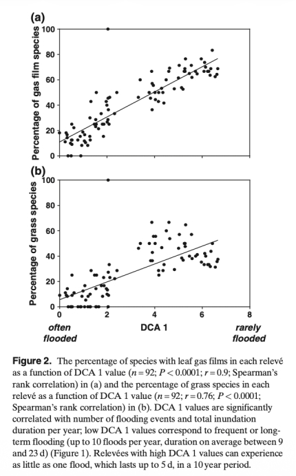 葉片氣體膜、水下光合作用及植物物種在洪水梯度中的分布