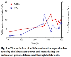 硫化物和甲烷生產速率可用半階動力學模型描述,分別依賴于水體硫酸鹽和可溶性COD濃度,這為下水道網絡建模提供了實用工具。