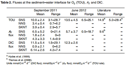 底棲通量(總堿度、溶解無機碳、總耗氧量):