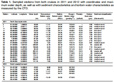 數據來源:圖5展示了南部北海、北部北海和斯卡格拉克海峽-挪威海槽代表性站位的氧氣和pH垂直剖面;表3提供了擴散性氧氣吸收速率和氧氣滲透深度的數據。