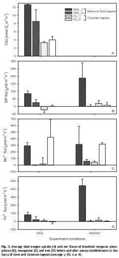 數據內容:測量了沉積物耗氧速率以及DIP、Mn2?、Fe2?在沉積物-水界面的交換通量。例如,薩卡迪戈羅潟湖SGL_1站點的耗氧速率最高(12.6±0.1 mmol m?2 h?1),且缺氧條件下DIP和Fe2?釋放通量顯著增加。