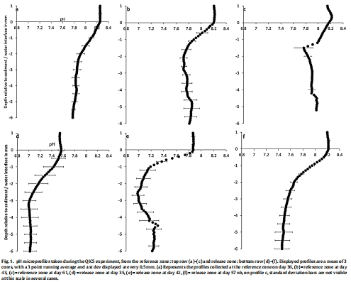 數據來源:pH的微剖面數據集中展示在圖1中,該圖對比了不同時間點泄漏區與參照區的pH垂直分布。