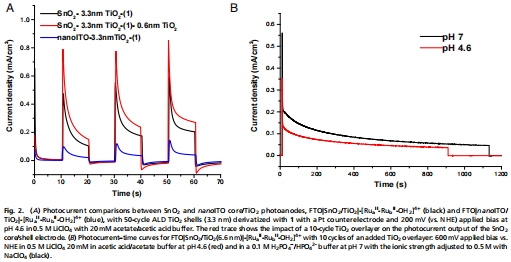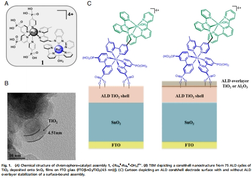 采用原子層沉積技術(shù)沉積薄的氧化物(Al?O?或TiO?)覆蓋層,以穩(wěn)定發(fā)色團(tuán)-催化劑組裝體在氧化物表面的結(jié)合,尤其是在近中性pH的緩沖液中,解決其易水解脫落的問題。