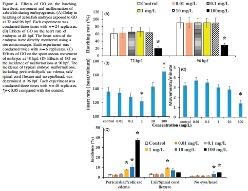 斑馬魚胚胎形成過程中產生特定的納米毒性-氧化石墨烯