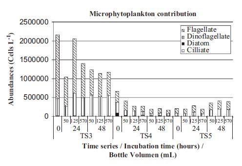 圖3、不同時間序列實(shí)驗(yàn)中最常見的微型浮游生物群落的貢獻(xiàn)。